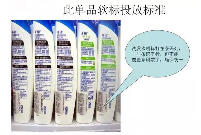 洗發水明標打在條碼處,與條碼平行,但不能覆蓋條碼數字,確保美觀統一。