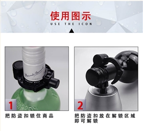 把買(mǎi)來(lái)的酒瓶防盜扣,直接鎖在酒瓶的瓶口,這樣就解決了紅酒防盜的問(wèn)題。用戶(hù)買(mǎi)了紅酒之后,經(jīng)過(guò)收銀臺(tái),再把酒瓶防盜扣取下來(lái),收回重復(fù)使用。