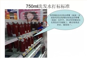 利用繩標扣在商品噴嘴(瓶蓋)處或者利用自制繩標將商品的噴嘴(瓶蓋)除擰開,然后利用繩標扣在商品擰開縫隙上,最后將商品擰好。確保美觀統一。