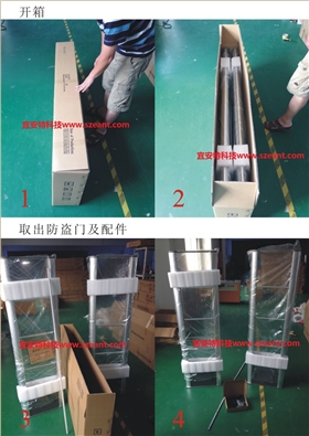 超市防盜器安裝之前,建議先接好主機、副機架子主板之間的連線,立在需要安裝位置,連接電源通電進行環境測試,調整好最佳位置狀態,才固定鎖住超市防盜器,建議不要盲目打膨脹螺絲底座。