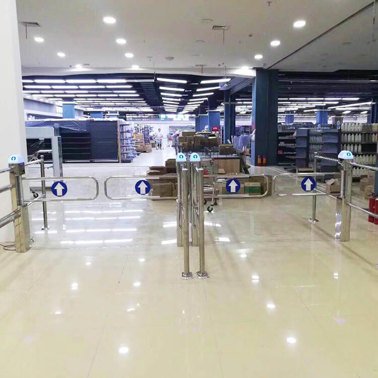超市防盜自動感應擺閘是一套功能強大的人員通行官制系統,它能快速無障礙地實現智能化人員出入管理。主要應用于各種商場、超市店鋪等人流量較大的公共場所。