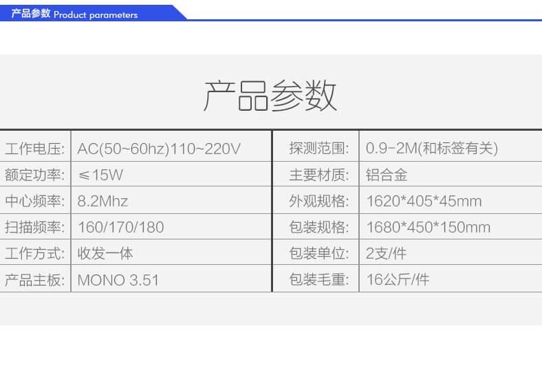 采購:超高型超寬服裝防盜射頻天線EC511